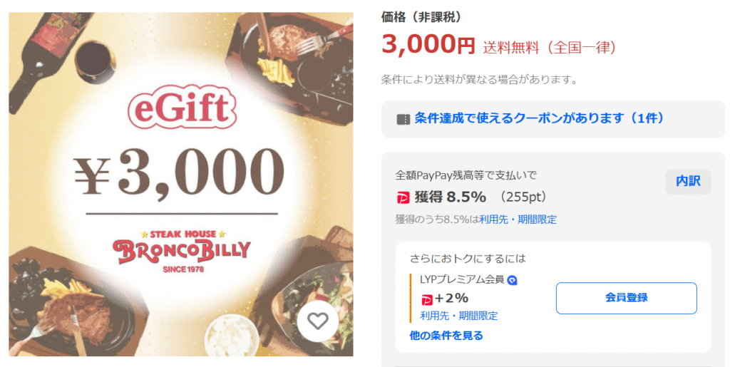 - ✅ ギフト券購入前に対象店舗を確認(ブロンコビリー対応かチェック)