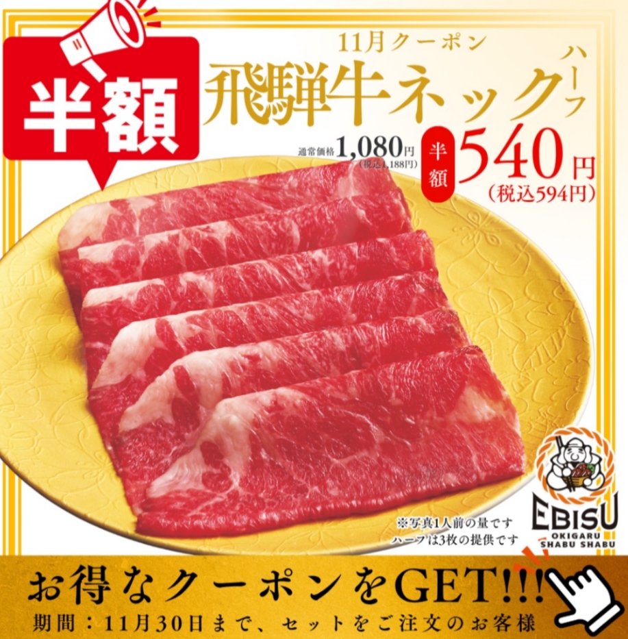 🔥 週末限定!人気No.1「えびすセット」がお肉1.5倍(~12/21)
